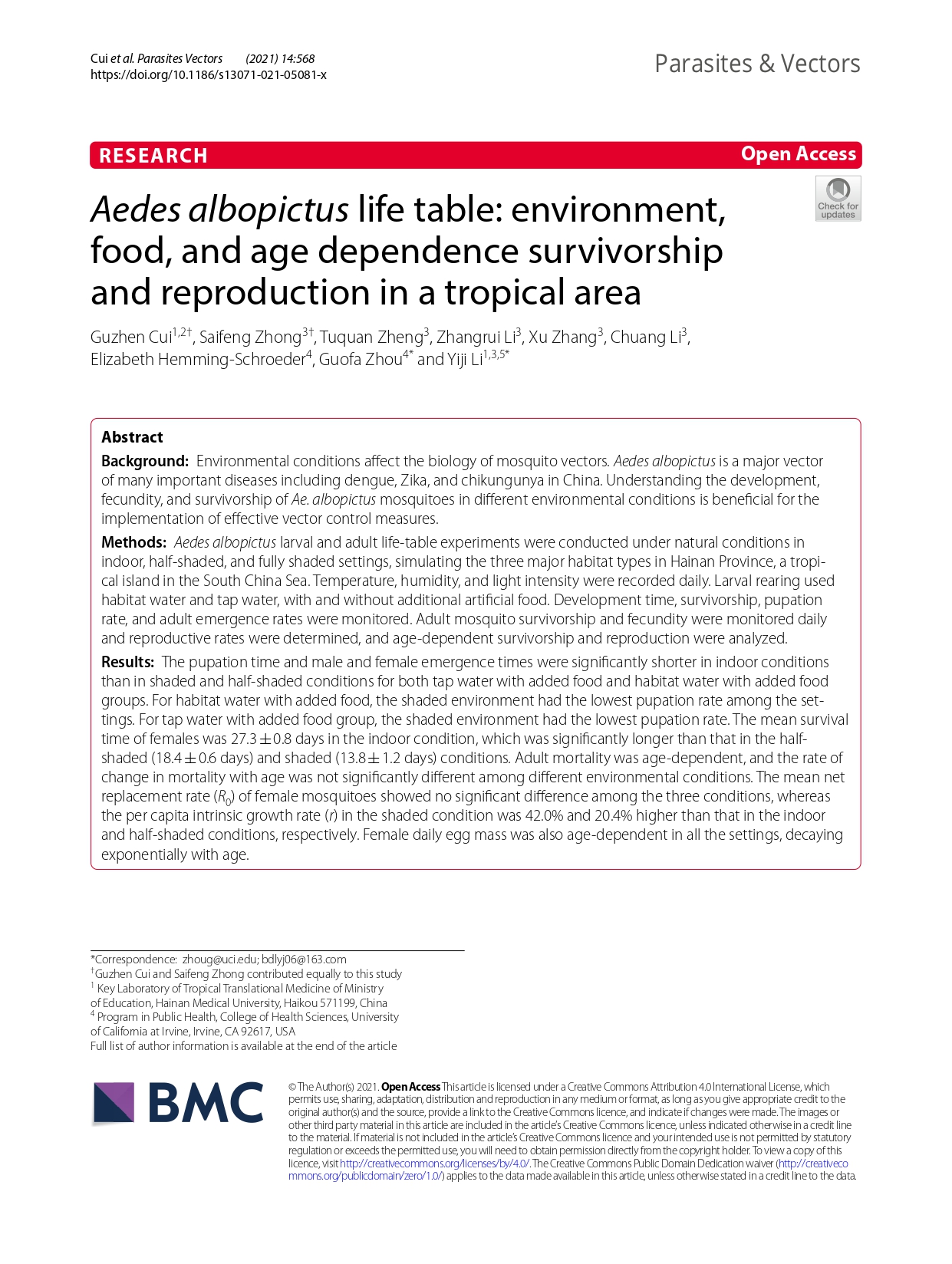 3 Parasites Vectors Aedes albopictus life table.pdf