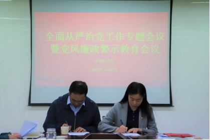 4月28日,永利yl23411集团全面从严治党工作暨党风廉政警示教育会议于务本楼W201会议室召开,公司党政领导、各行政职能科室、教研室、实验中心负责人、党支部书记、全体辅导员参加。会议由公司党委副书记孟立科主持。