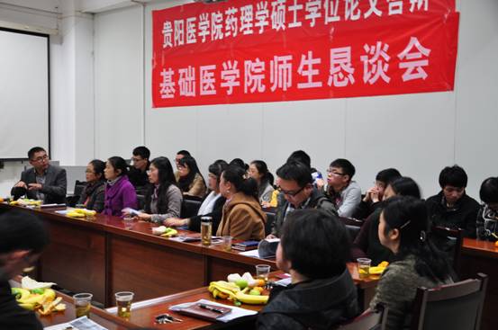 为更多、更近、更深入的了解员工的所思、所想、所需,创建新型师生关系,营造一个温馨、和谐的人文环境,实现师生互悦,教学相长的目的,临床医学2011级大三上学期师生恳谈会于2013年11月14日在药理学会议室召开。校员工处、公司党政领导、学科教研室的教师代表、年级辅导员及员工代表分别参加了此次的师生恳谈会。