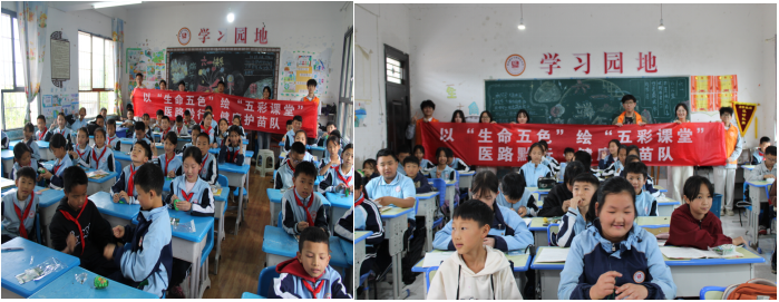 在全国科普教育周之际,永利yl23411集团“医教黔行 健康护苗”志愿服务队联合药公司志愿服务团队,于5月28日走进马场镇中心小学,以“健康中国・科普赋能”为主题,以生命五色绘五彩课堂,构建沉浸式科普场景,为200余名师生送去“科普礼包”。