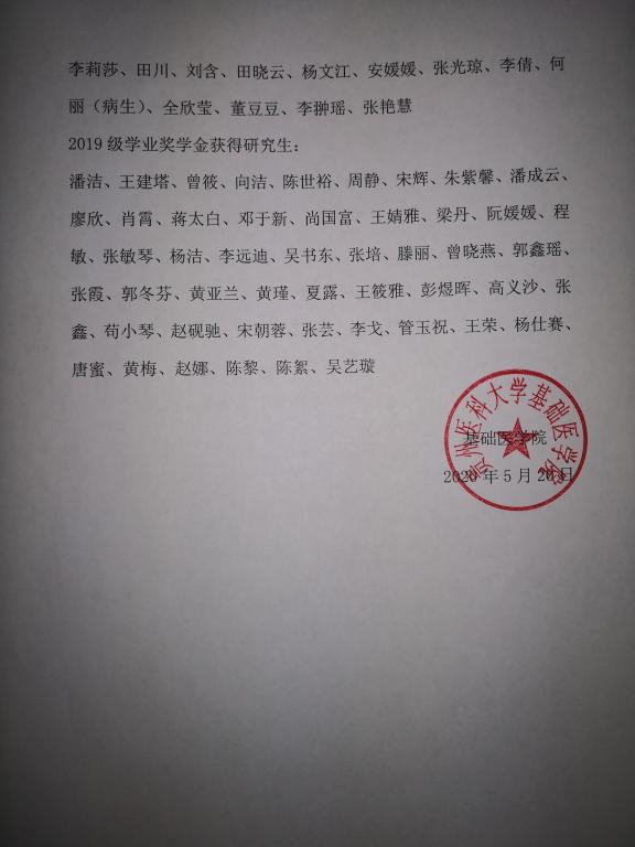 永利yl23411集团官网入口2019-2020学年研究生学业奖学金 永利yl23411集团评选结果公示