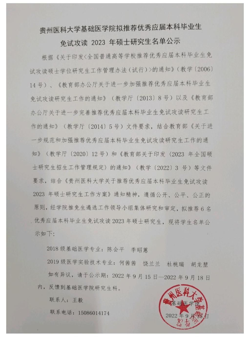 永利yl23411集团拟推荐优秀应届本科毕业生及免试攻读2023年硕士研究生名单公示