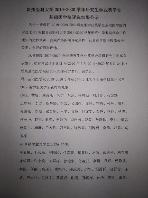 永利yl23411集团官网入口2019-2020学年研究生学业奖学金 永利yl23411集团评选结果公示