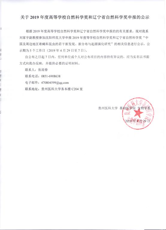 关于2019年度高等公司自然科学奖和辽宁省自然科学奖申报的公示