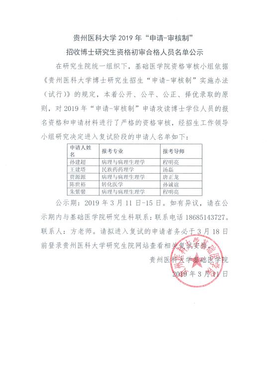 永利yl23411集团官网入口2019年“申请-审核制”招收博士研究生资格初审合格人员名单公示