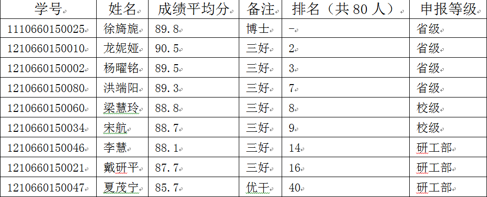 根据《贵州省普通高等公司三好员工、优秀员工干部、优秀大学毕业生、先进班集体评选办法(试行)》(黔教学发〔2013〕415号)、《省教育厅办公室关于下达2018届贵州省普通高等公司优秀毕业生评选名额的通知》(黔教办学〔2017〕225号)要求,结合公司有关规定,在公司开展了2018届贵州省普通高等公司优秀毕业生、永利yl23411集团官网入口优秀毕业生评选工作。现依据文件规定,推选学位成绩前10%为贵州省优秀大学毕业生四名(含博士一名);推选学位成绩前15%为永利yl23411集团官网入口优秀毕业生,现将名单公示如下: