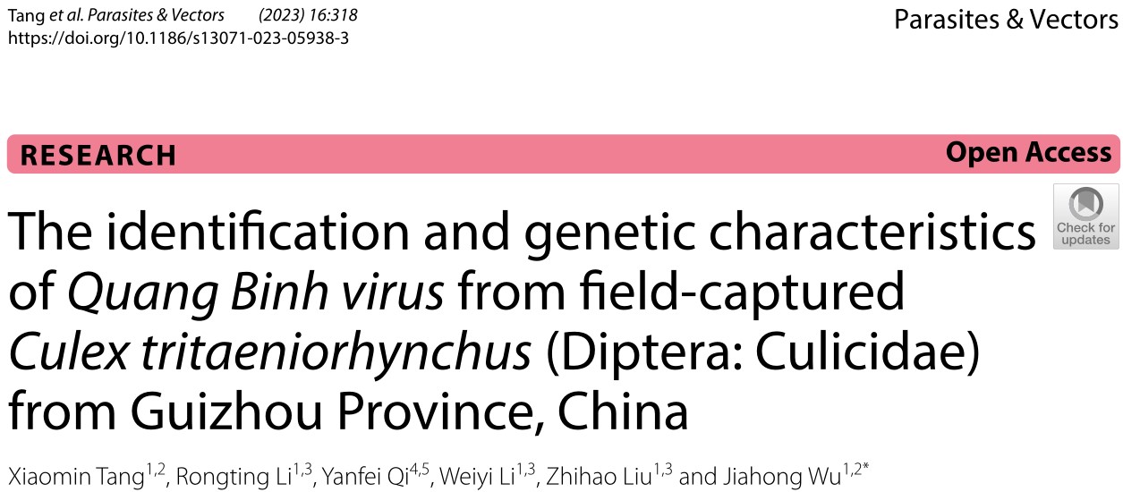 吴家红教授课题组在Parasites & Vectors期刊发表关于Quang Binh virus的研究论文