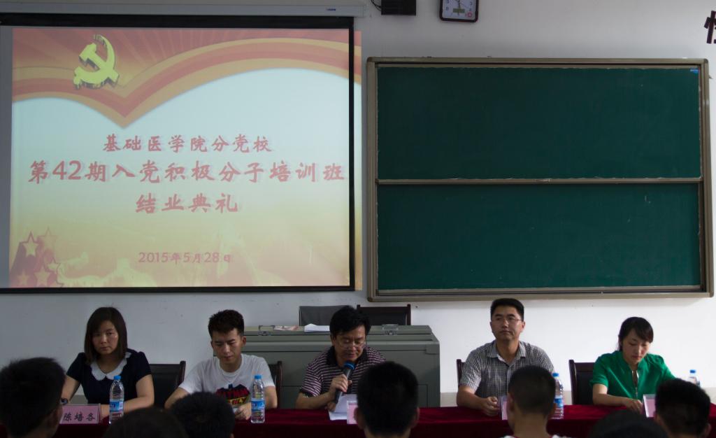 2015年5月28日,永利yl23411集团分党校第42期入党积极分子培训班结业典礼在花溪校区1101教室召开,公司党委书记徐国强、公司党委副书记廖兴江、2013级党支部书记罗恒老师、2014级辅导员刘逸洲老师以及本期培训班的班主任陈培各老师出席了毕业典礼。典礼由陈培各老师主持。