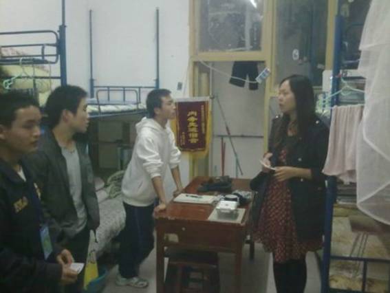 检查中,老师们亲切询问了同学们的学习、生活及思想情况,并充分肯定了同学们在宿舍内务整理、宿舍文化建设和安全稳定工作的成绩。从检查结果看,员工宿舍内务整理、安全工作整体状况良好,绝大部分宿舍干净整洁,无违章使用电器现象。针对个别宿舍卫生不太好的情况,已组织员工进行整改。